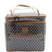 The must-have accessory for every traveller! Enough space and compartments to ensure all your cosmetics are perfectly packed. Designed with a bottom section for larger items which includes an inner flap to keep bottles in place and upright. The top section is ideal for smaller items or make-up and it also has a front zip pouch for other items.  This bag has an inner waterproof lining and outer fabric is laminated to ensure the bag remains protected from water or dirt and can be wiped clean. All binding and trims are canvas.